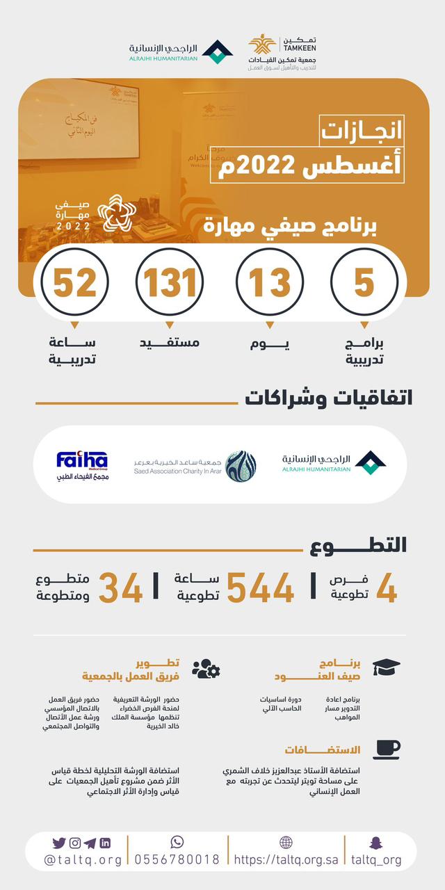 أبرز إنجازات ⁧‫#جمعية_تمكين_القيادات‬⁩ خلال شهر ( اغسطس  - 2022 م )